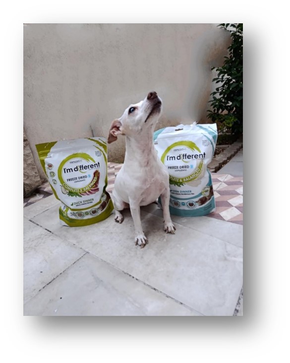 Η I’m Different® Dinner η μόνη Freeze-Dried τροφή σκύλου στην Ελλάδα, φτιαγμένη με πάνω από 80% φρέσκο κρέας ή ψάρι ανθρώπινης κατανάλωσης και μία μόνο πηγή ζωικής πρωτεΐνης.